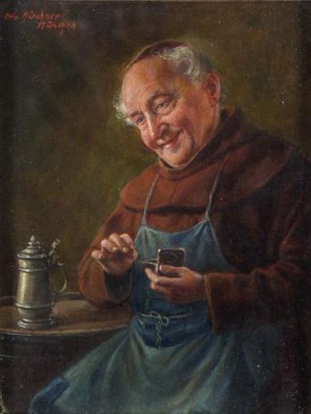 Mönch als Kellermeister, eine Prise Schnupftabak zu sich nehmend
