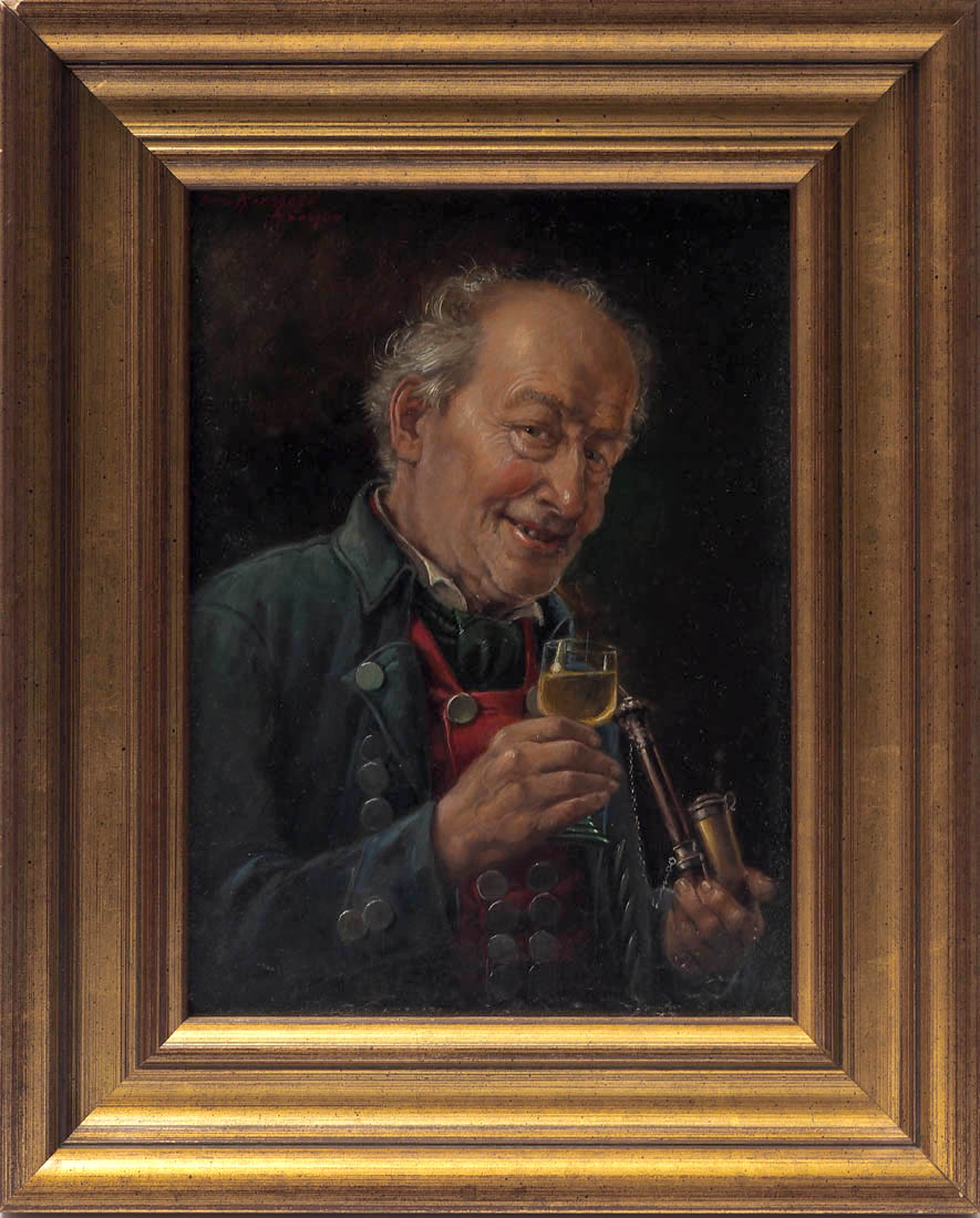 | Portrait of a peasant-dressed gentleman with wine glass and pipe | |