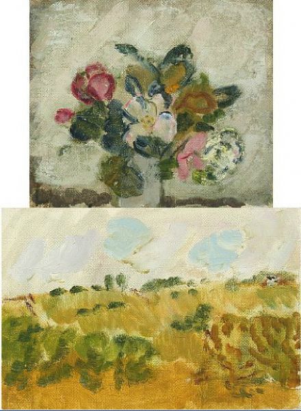 Landscape and still life with flowers