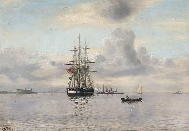 The frigate Jutland at anchor south of Kronborg, Denmark