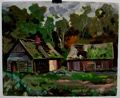 CABINS; WINDING CANAL; VILLAGE SCENE