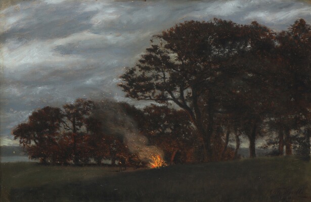 Sanct Hans bonfire by the large oaks at Tadse Lake