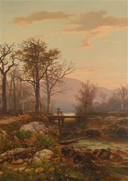 River Landscape with decorative figures in the evening light