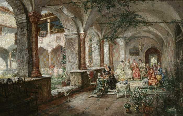 Rokoko-Gesellschaft im Schloss-Innenhof