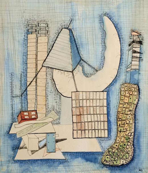 Ink and watercolour on paper