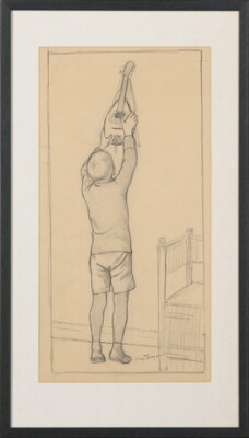 Boy with mandolin and two portraits.