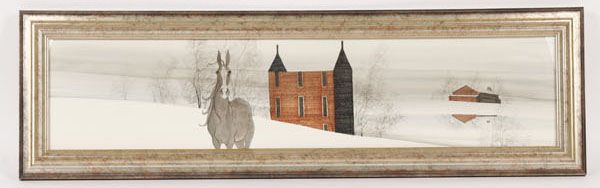 yardlong winter scene w/horse and buildings
