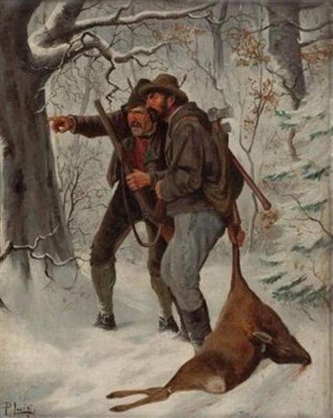 Zwei Wilderer mit erlegtem Wild im Winterwald