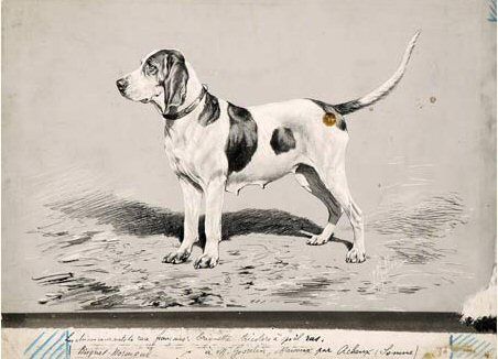 | «Les chiens courants de race française: briquette tricolore à poil ras. Briquet-normand à M. Gosselin, Maiseux par Acheux (Somme | |