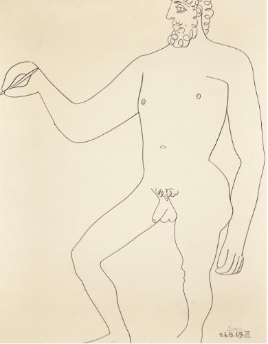 | HOMME NU DEBOUT DESSINANT | |