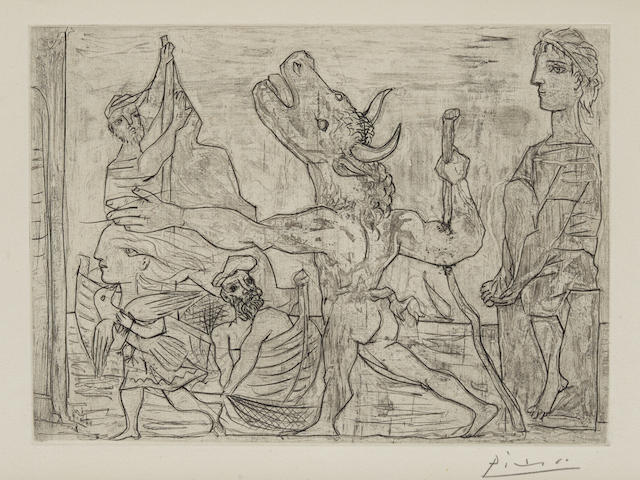 | Minotaure aveugle guidé par une Fillette III, pl. 95 from La Suite Vollard (B.224, Ba. 436) | |