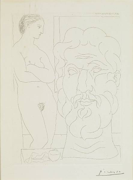 | Modèle et Grande Tête sculptée, pl. 61, from La Suite Vollard (B. 170; Ba. 323), 1933 | |