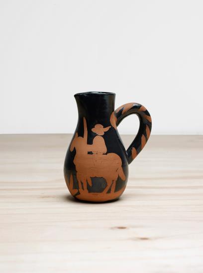 | Unknown Red earthenware turned pitcher, painted in black, with partial brushed glaze | |