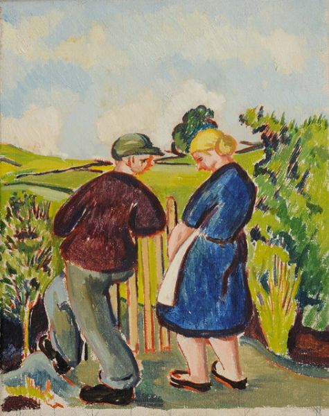 Stooking the hay, planting the potatoes and meeting at the gate, a set of three canvases