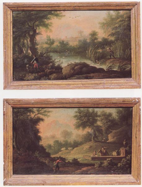| Lotto unico di due dipinti: «Paesaggio fluviale con cacciato- | |
