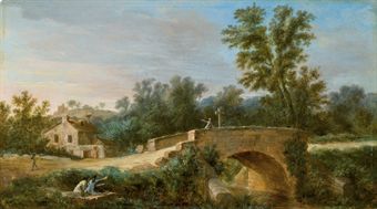 Pont en pierre dans un paysage animé