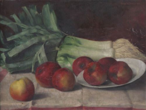 Still life with apples and leek
