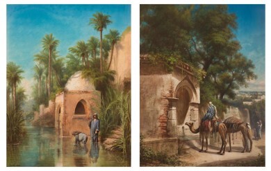 | a) Carovana a rposo b) Paesaggio orientale con fiume | |