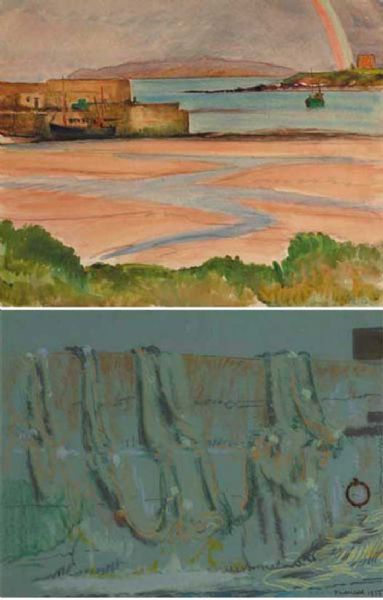 | RAINBOW OVER LOUGHSHINNY, 1952 and DRYING FISHING NETS, 1955 (A PAIR) | |