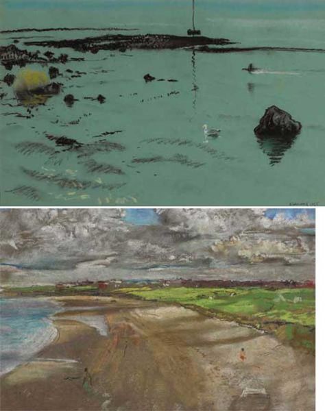 | ROCKS AT LOW TIDE NEAR LOUGHSHINNY, 1955 and VIEW ALONG A SANDY BEACH (A PAIR) | |