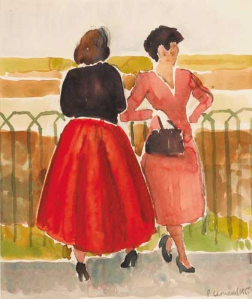 | STUDIES: TWO WOMEN AT DOLLYMOUNT BUS STOP, 1950, WOMEN ON DOLLYMOUNT STRAND, 1950, and TWO FIGURES BEFORE FENCE RAILINGS, 1955 ( | |