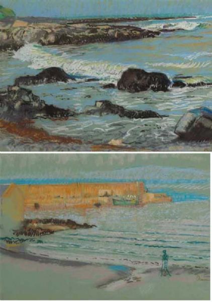 | WAVES BREAKING ON A SHORE and VIEW OF LOUGHSHINNY HARBOUR (A PAIR | |