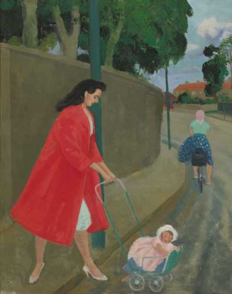 | WOMAN WITH CHILD IN PRAM CROSSING A STREET | |