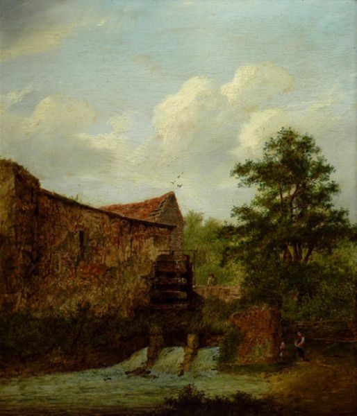 A LANDSCAPE WITH FIGURES BY A MILL
