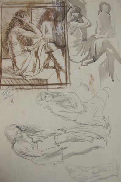 A Folio containing various pencil and wash sketches, including portrait and figure subjects