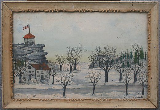 Naive Snowy Landscape in the Primitive Style , Folk Scene
