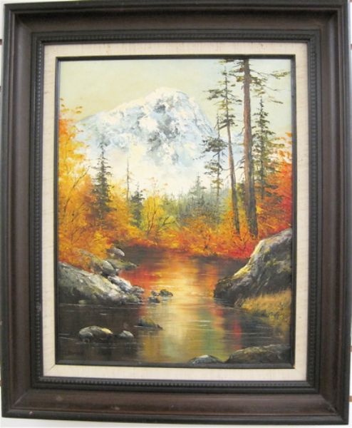 | Depicting a mountain landscape in autumn with a river in the foreground | |