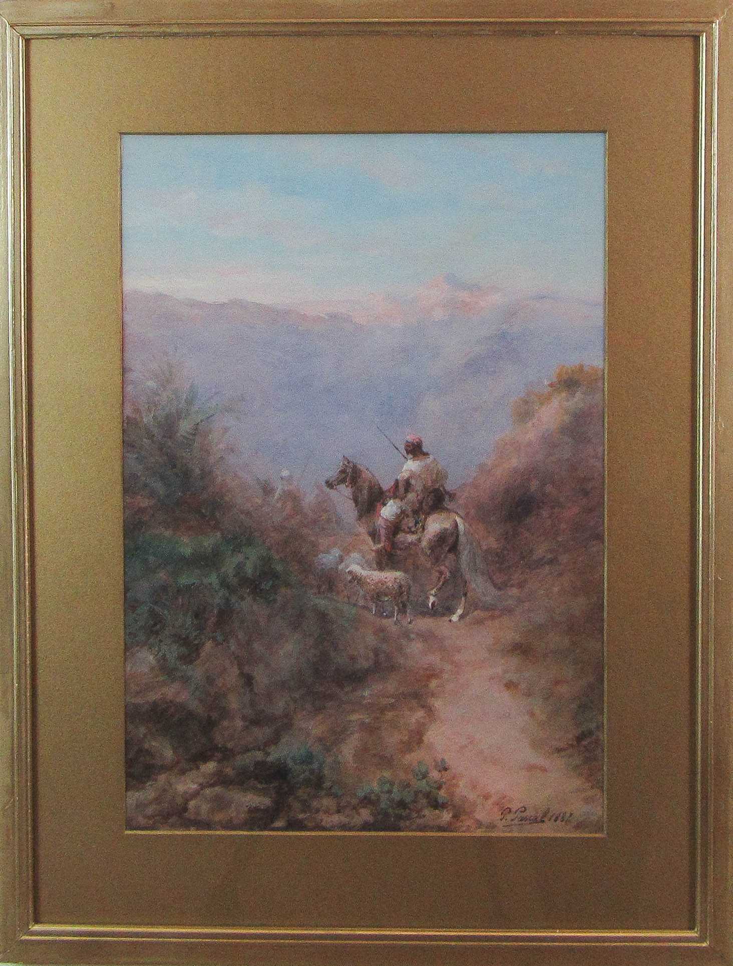 | Middle Eastern landscape with shepherds on horseback crossing a pass | |