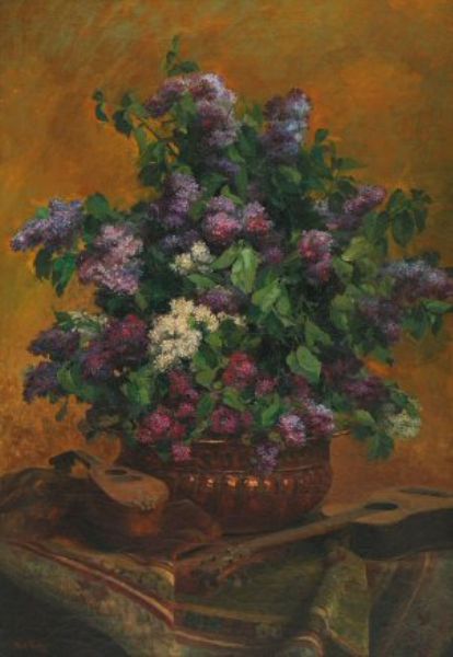Bouquet de lilas dans un pot en cuivre