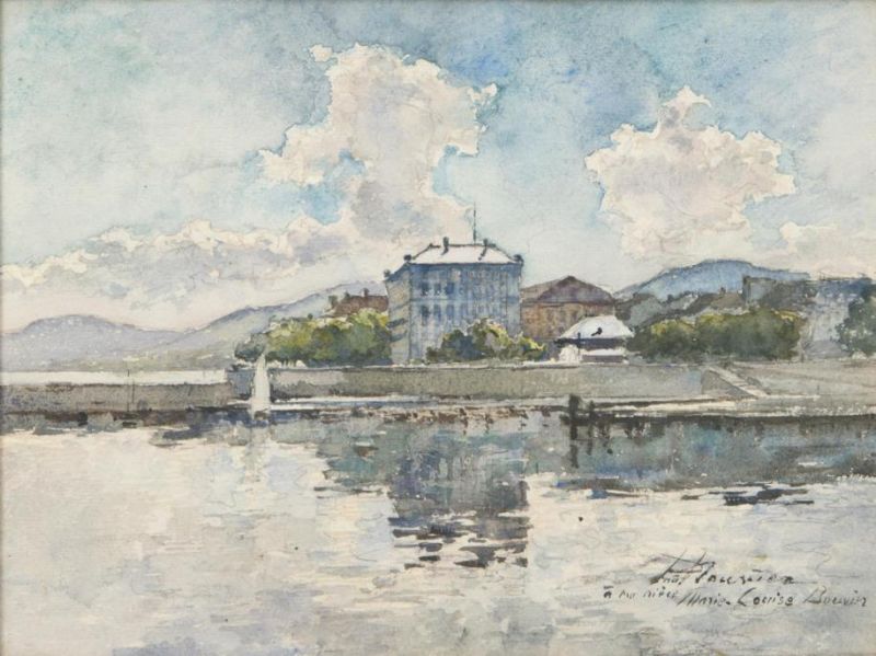 Vue du lac sur Neuchâtel avec la montagne de Boudry
