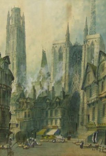 Figures Before a Continental Cathedral