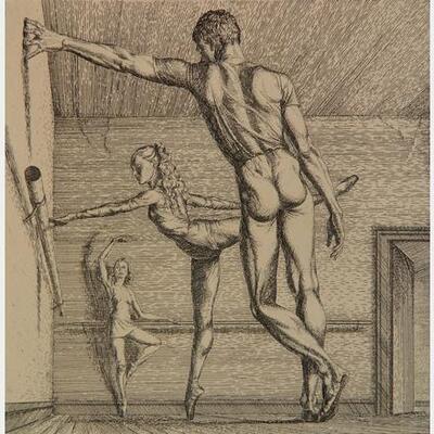 ''Arabesque''- etching, 1947, signed in pencil, edition of 75, mat burn, minor soiling in margins. 6 1/2 x 6 1/2' | |