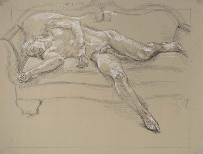 | Crayon Gray and white crayons on grayish-brown laid paper | |