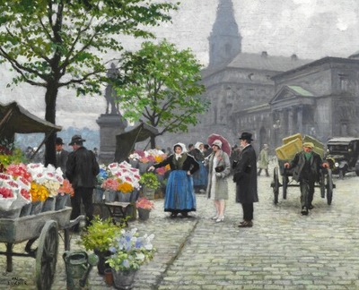 An elegant couple buy flowers at Højbro Plads