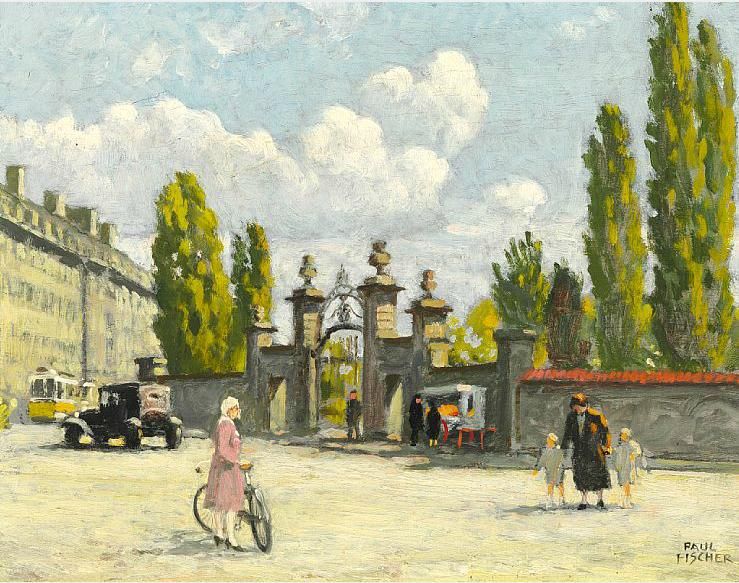 | Street scene in front of the entrance to Kongens Have at the corner of Sølvgade | |