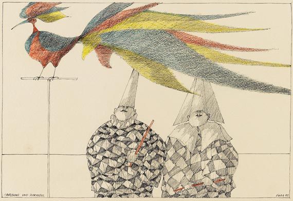 Harlekine und Ziervogel