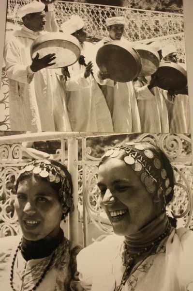 Maroc. Jeunes filles riant et Joueurs de tambour