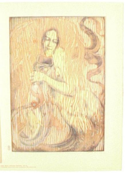 | Print in 4 colours (3 woodcut & 1 lithogr.)laid paper; printed caption at the left upper corner. | |