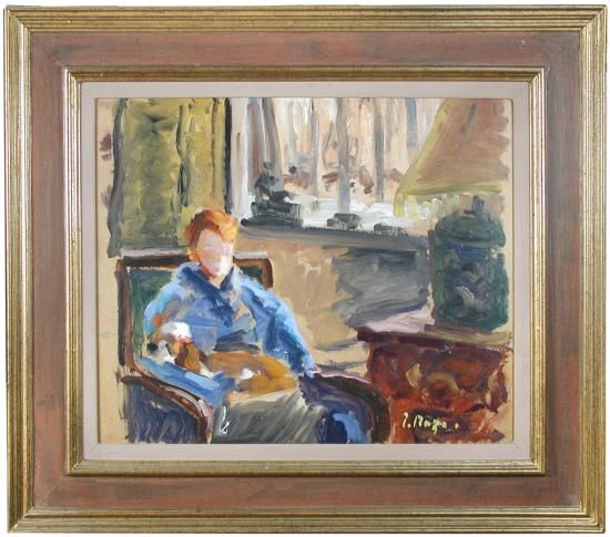 | Jessie, the artist's wife, seated in an interior with their spaniel | |