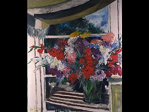 BLUMENSTILLEBEN VOR DEM FENSTER