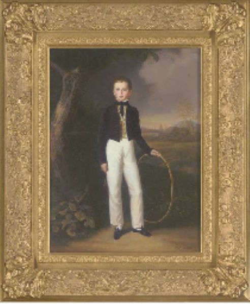 | Portrait of a boy, full-length, holding a hoop, in an extensive landscape | |