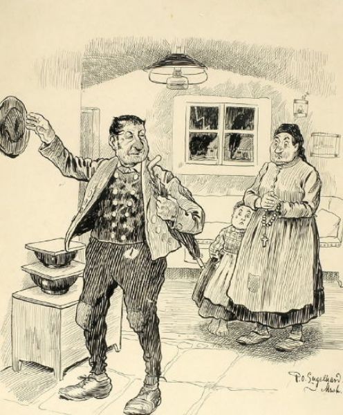 | Der Bauer verabschiedet sich von seiner Frau und geht ins Wirtshaus | |