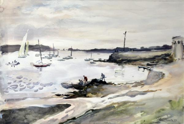 | Pêcheur à pieds sur la cale, Bretagne | |