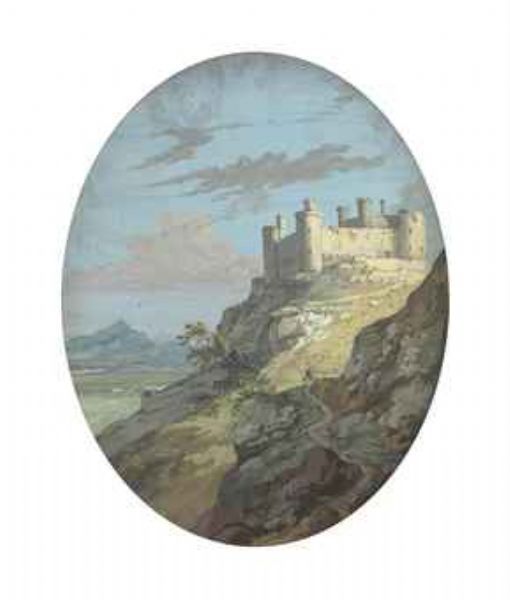 | View of Harlech Castle (illustrated); and View of a watermill | |