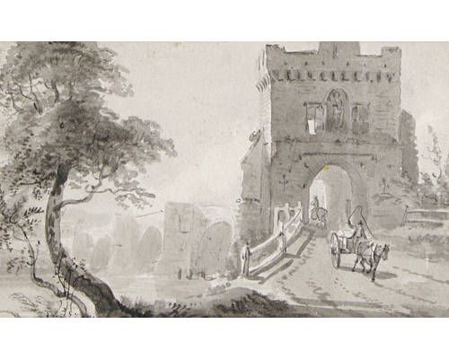 Bridge and gatehouse with figures