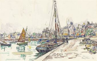 | Gouache watercolor and black Conté crayon on paper laid down on board | |